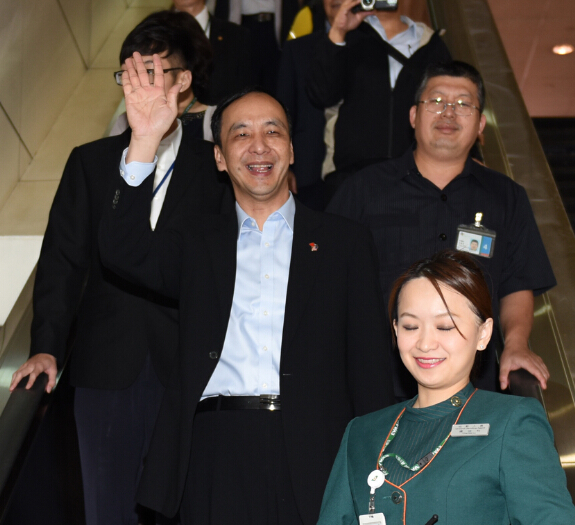 图:国民党“总统参选人”朱立伦(中)结束访美行程,16日清晨搭机返台/中央社