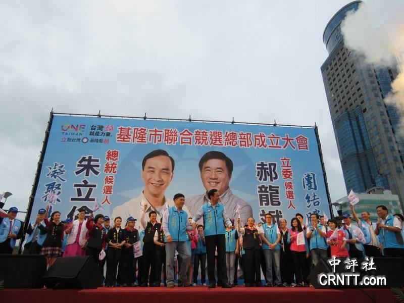 国民党“总统”参选人朱立伦、国民党基隆市“立委”参选人郝龙斌21日下午在基隆市仁二路的东岸和平广场举办造势大会,宣布成立联合竞选总部。