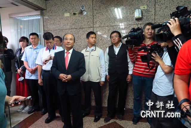 王金平在电梯口等待朱立伦。/中评社