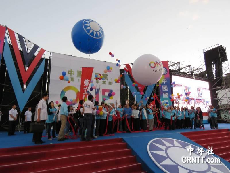 国民党22日下午在板桥第二体育场举办121岁党庆,现场聚集了近3万的支持者一同来为国民党加油打气。不分男女老幼,大家手拿白色的加油棒,国旗、党旗飘扬,选举激情HIGH翻天。下午4时10分许,国民党三大天王,包括马英九、党主席朱立伦、“立法院长”王金平,三人同台欢呼口号“One Taiwan, 旺台湾;国民党过半,台湾不会乱”,并依序致词发言。