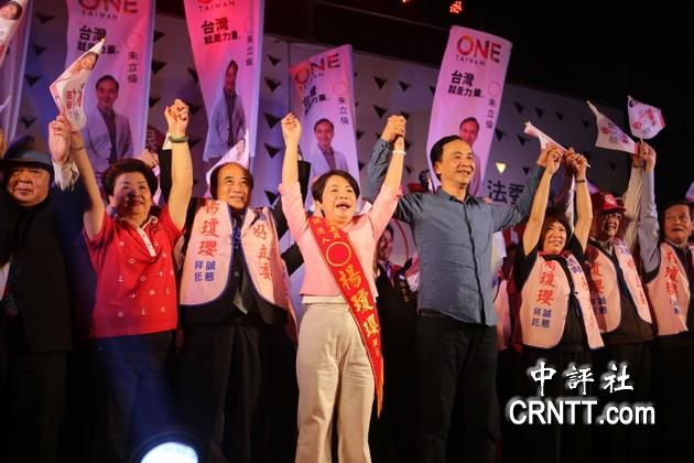 国民党台中“立委”参选人杨琼璎23日晚间举行大雅竞选总部成立晚会,国民党主席暨2016参选人朱立伦与“立法院长”王金平特别南下台中站台。/中评社