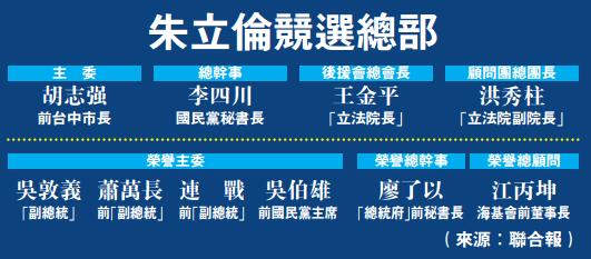 大公网12月5日讯 中国国民党“总统参选人”朱立伦竞选总部今日成立。12月4日上午朱立伦亲自召开记者会公布竞总重要人事,除敦请前台中市长胡志强担任主委外,总干事由秘书长李四川担任,后援会总会长由“立法院长”王金平担任、顾问团总团长由“立法院副院长”洪秀柱出任;“副总统”吴敦义、前“副总统”萧万长、连战、前中国国民党主席吴伯雄都将出任荣誉主委。朱立伦也向支持者喊话,希望所有对国民党失望的朋友不要绝望,要站出来,全力以赴。