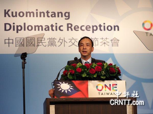 朱立伦在国民党“驻华外交使节”茶会上进行演说。/国民党提供