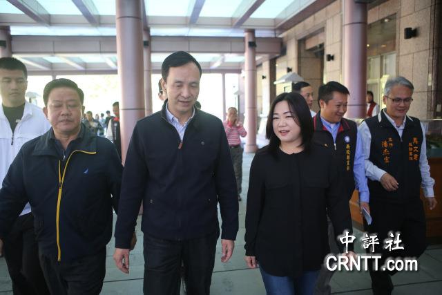 朱立伦在蓝委马文君、埔里镇长周义雄等人陪同下,前往中台禅寺参拜。/中评社