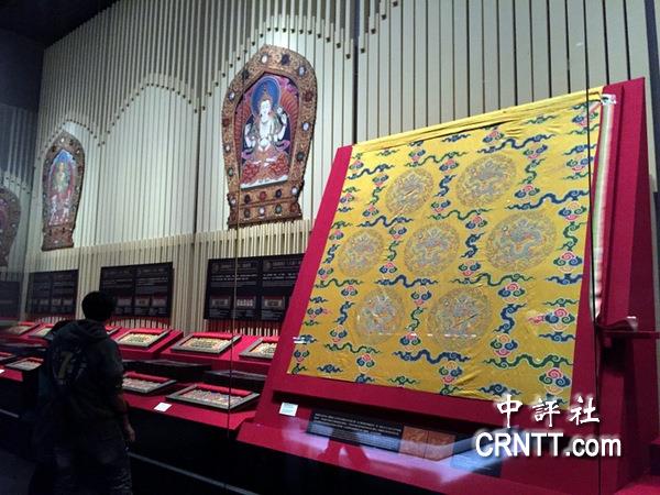 《龙藏经》配件之黄缎织花祫经衣之夹层:黄地团龙如意云纹织金壮花缎。/中评社