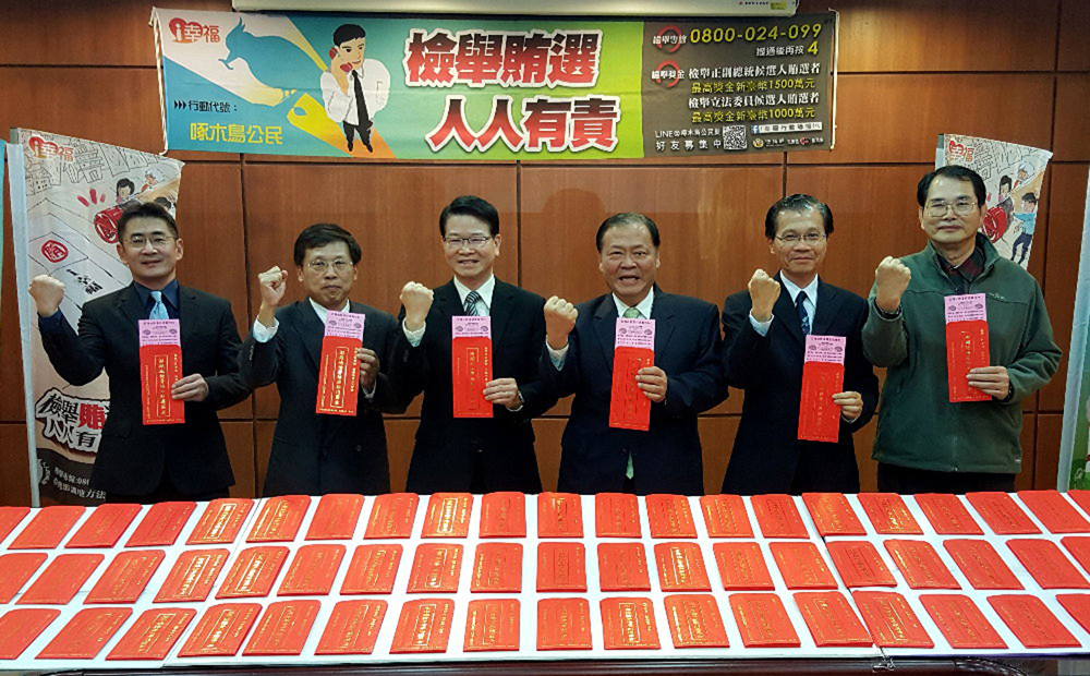 图:大选倒数,为防贿选,澎湖县政府与检警调政风等单位12日联手举办“检举贿选奖金送给您”反贿选活动,宣示“宣导在先、查缉在后”,吁请全民支持干净选举,让选举真正公平正义/中央社