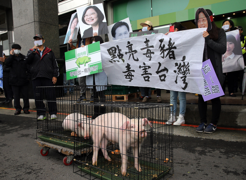 图:来自云林的猪农12日带小猪去到民进党“总统候选人”蔡英文竞选总部,抗议蔡英文有意开放含瘦肉精美猪进口台湾 中央社
