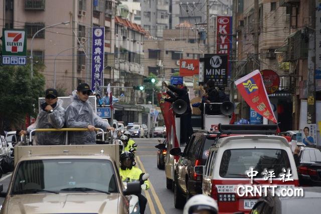 国民党车队与中华统一促进党车队相遇。/中评社
