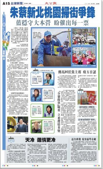 “这几天台北冷了许多,只有摄氏13度,但选情更冷,很多人都认为这次大选胜负已定,周六不想去投票了,我也不去。”在台北有十多年驾驶经验的的士司机冯先生告诉记者。