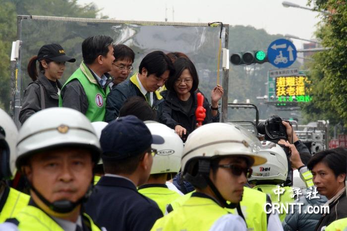 蔡英文在绿营大票仓台南车队游行,赖清德陪同。/中评社