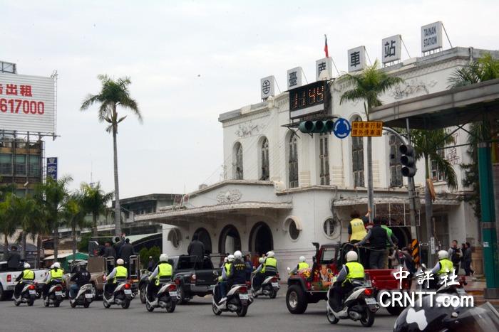 蔡英文在绿营大票仓台南车队游行,经过台南火车站前。/中评社