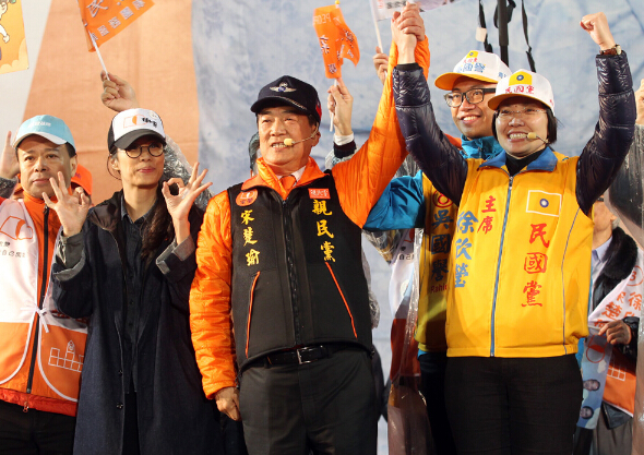 图:亲民党正副“总统”候选人宋楚瑜及徐欣莹15日晚在台北造势/中央社