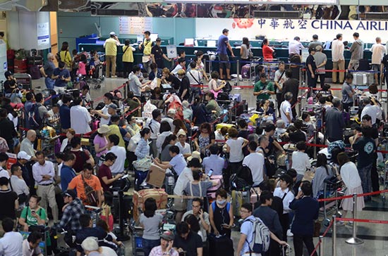图:日前因华航空服员罢工,导致大批旅客滞留桃园机场\资料图片