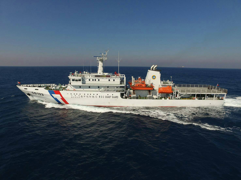 图:台湾海巡署16日上午派出1000吨级的台东舰前往南海太平岛巡弋护渔 资料图片