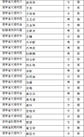 大陆辽宁旅行团一行26人发生火烧车意外,全部罹难。图为台湾联合报记者翻拍的乘客名单。记者甘育玮/翻摄