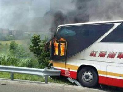 今天中午12时57分,台湾桃园机场联络道发生自撞车祸,当地警消人员接获通报,一辆游览车因不明原因撞上护栏,整辆车随即起火燃烧。中午13时21分火势扑灭,车上26人罹难。失火游览车属玫瑰石通运有限公司,出厂时间为2010年5月,车龄仅6年,但曾有5次违规纪录。
