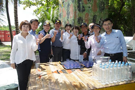 20日,国民党与民进党立委们在太平岛饮用取自岛上的淡水/中央社