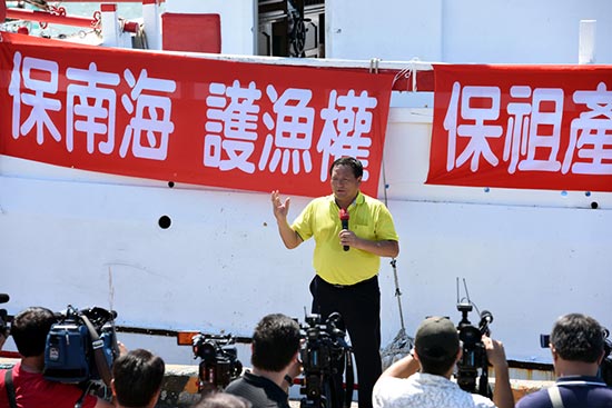 渔船出发仪式在屏东东港举行,现场张贴着“太平岛是岛不是礁”、“固有疆域寸土不让”等横幅,出发渔船上张挂着“保南海、护渔权、保祖产”等字样。当天不少民众前来声援,为出发渔民加油。有渔民表示,南海是两岸渔民世代祖先的传统作业区,希望两岸携手保护祖产。