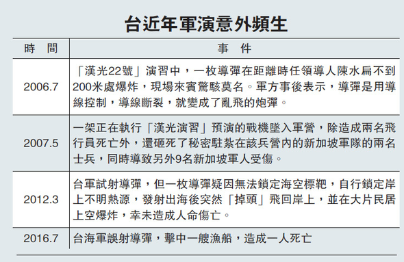 另据报道,汉光演习预演发生战车翻覆,造成人员伤亡。台当局官方发言人称,蔡英文相当关心,对伤亡人员表达哀悼,第一时间也请军方全力协助家属,并从速了解事故原因。