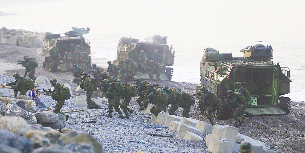 图;台湾军方拟招募后备军人补充兵源。图为上月岛内举行军演 资料图片