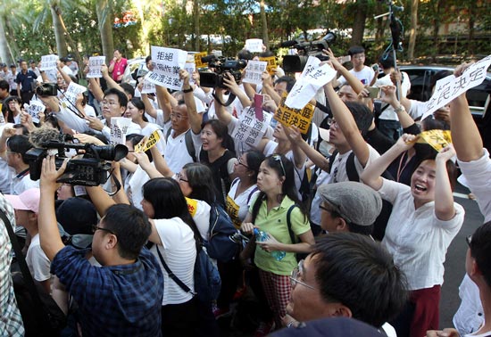 在台北,反同志婚姻的民众17日冲进“立法院”以示抗议。中央社