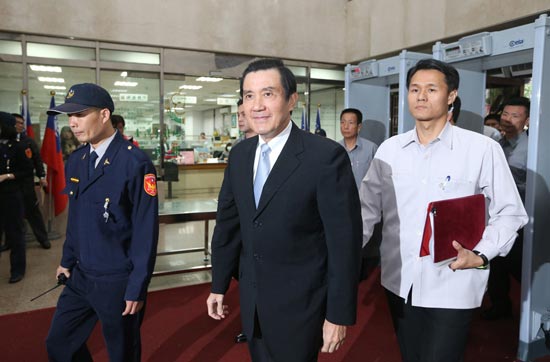 马英九到台北地方法院检察署应讯。中央社