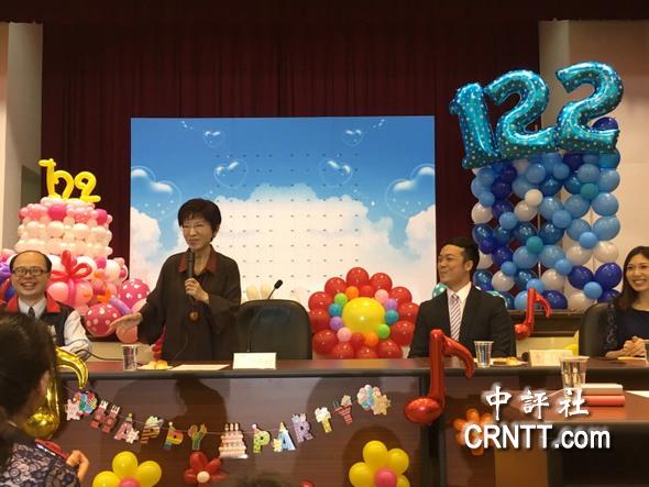 洪秀柱与出席代表一起庆祝122周年党庆。/中评社