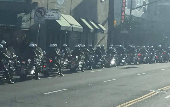 图:蔡英文过境三藩市,美方派60部重型电单车开道/中央社