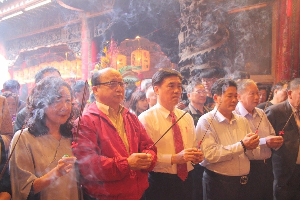 胡志强(左二)加入郝龙斌(左三)竞选团队,担任竞选总部主委。 图片来源:台湾《联合报》