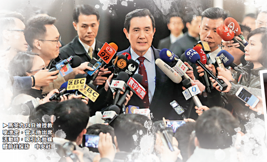 图:马英九14日被控教唆泄密。当天他出席活动时,吸引大批媒体前往采访/中央社