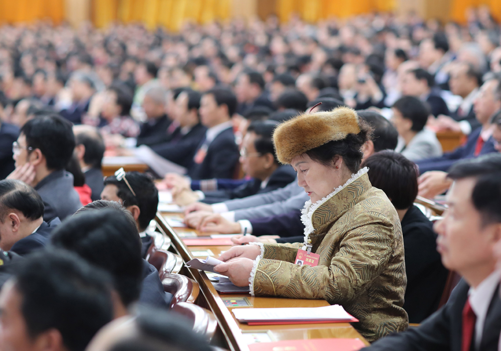 图:代表们在听会/新华社