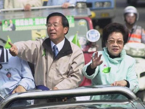 2004年3月19日,陈水扁和吕秀莲同乘吉普车在台南市金华路为选举拉票。图片来源网络