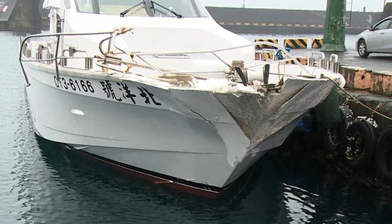 “北洋号”海钓船十八日晚遭台军“光华六号”导弹快艇碰撞,船头明显受损。中央社
