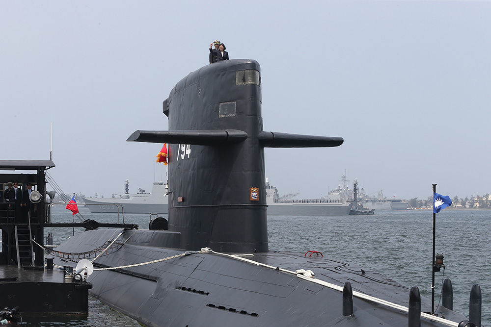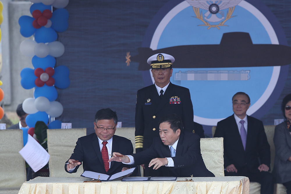 蔡英文21日南下高雄左营水星码头,参加“海军2017年敦睦远航训练支队启航欢送暨潜艇自造设计启动及合作备忘录签署仪式”。台防务部长冯世宽、海军司令黄曙光、台船董事长郑文隆以及中山科学研究院(“中科院”)院长张冠群,共同完成潜艇自造的启动命令和签署合作备忘录。