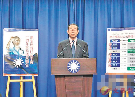大公网3月31日讯 据台中评社报道,中国国民党昨日举行了“洪主席就任党主席一周年党务成果报告”记者会,成绩包括对抗蔡英文当局清算党产、政策监督与议题攻防等3大类,其中两岸关系方面成绩十分耀眼。