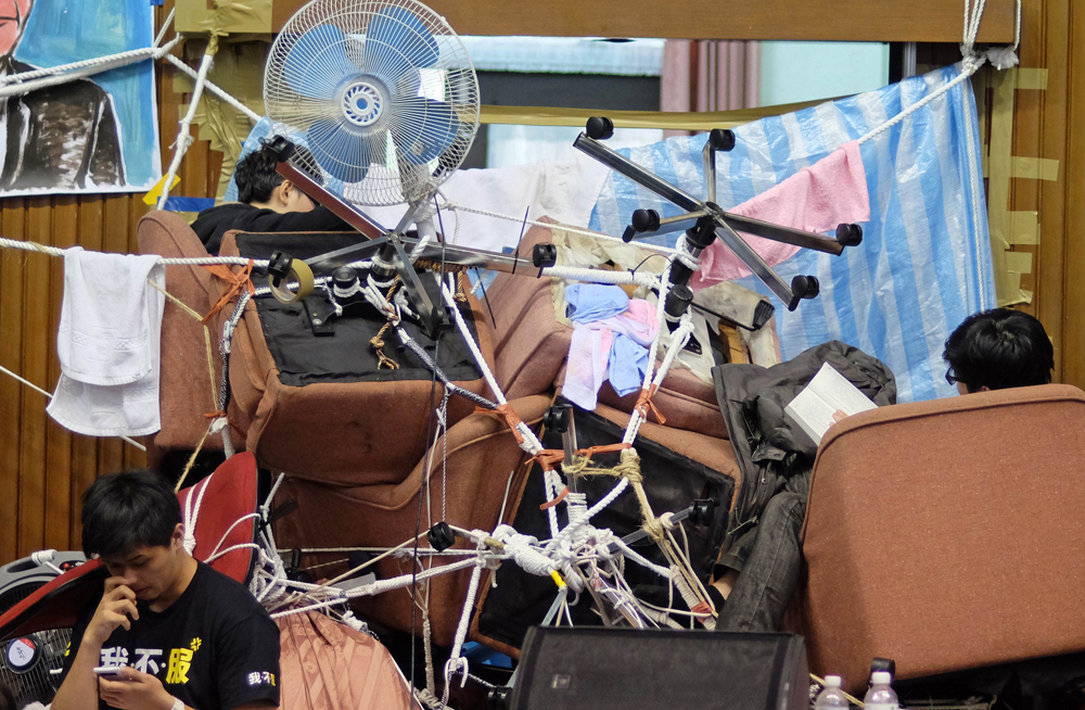 图:“太阳花”占领“立法院”时以椅子堵塞议场门口\资料图片