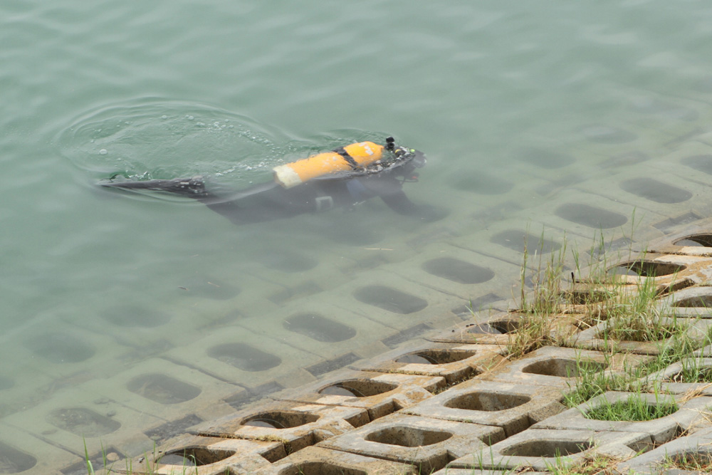 嘉南农田水利会乌山头区管理处主任洪振东表示,共雇请3名潜水员、加上岸上警戒、水面2艘快艇警戒,以高规格大范围搜寻,地点选在离铜像区最近的进水口水域。
