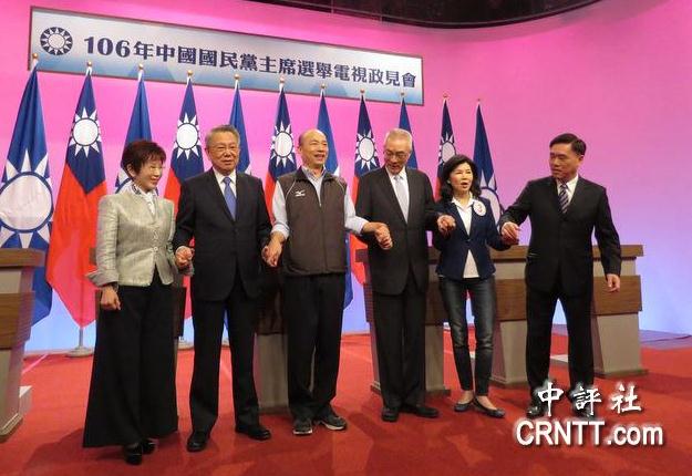 大公网4月30日讯 据中通社、联合报报道:中国国民党主席选举将于5月20日举行,第一场电视政见会29日下午登场,是6位候选人首度同台辩论。政见会采轮流发言形式,没有交叉诘问。6位参选人在开始前一同握手高喊“国民党加油”。