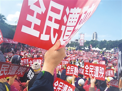 台湾军公教人员抗议民进党强推“年金改革”。 本报记者 吴亚明摄