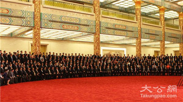 中共中央政治局常委、全国政协主席俞正声与全国台企联代表合影。 大公网记者李柏涛 摄