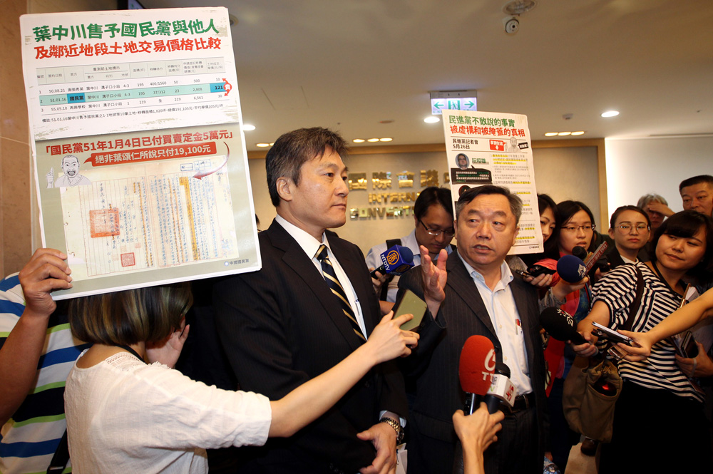 另外,5月26日民进党曾就“国发院”购地案举行记者会,指控国民党当年藉威权强夺民众土地,国民党的代表律师已于6日下午前往台北地方法院对民进党发言人阮昭雄、张志豪、吴沛忆等人提出诽谤控告。
