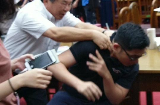 民进党“立委”掐国民党“立委”脖子。(图片来源:台湾《联合报》)