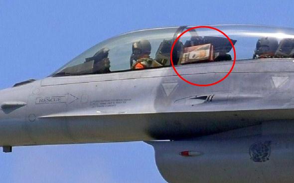 图:台F-16战机日前执行任务时,飞行员携带花莲麻糬上战机,被民众拍下照片,引发议论\网上图片