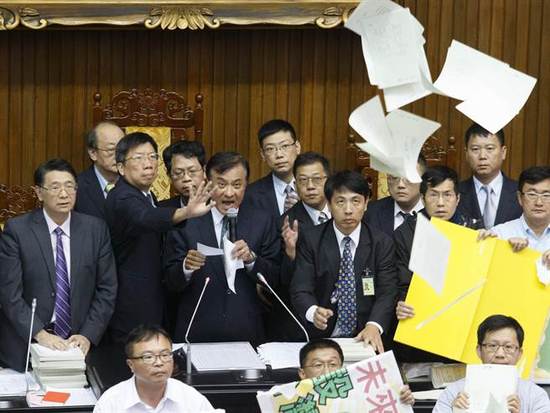 台“立法院”上演彻夜表决战“蓝绿”阵营频频群架