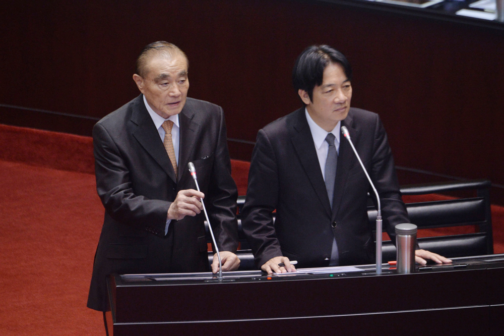 图:台“防长”冯世宽(左)日前称,若两岸发生战事,台湾可撑两周以上\资料图片