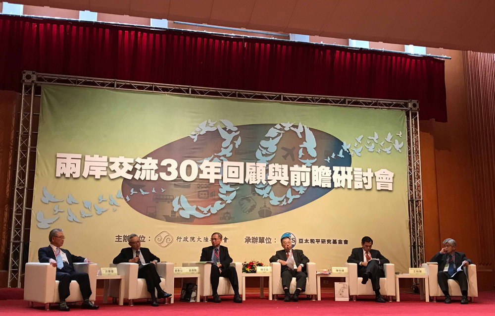图:台湾方面陆委会委託亚太和平基金会26日举办“两岸交流30年回顾与前瞻研讨会”。图为研讨会现场 中央社