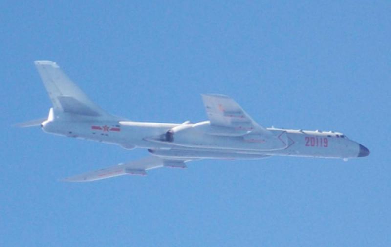 图:台军方发布由空军拍摄的大陆轰6K军机照片 资料图片