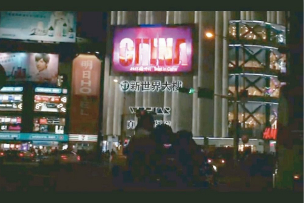 央视宣传片在台湾西门町商业区播放。(图片来源:台湾《联合报》)