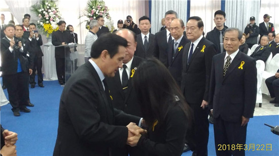 大公网讯(记者贺鹏飞报道)3月22日,在反军人“年改”抗议活动中意外身亡的缪德生公祭仪式在台北举行,台湾前“总统”马英九,前“行政院长”、陆军一级上将郝柏村,国民党主席吴敦义、前主席洪秀柱,新党主席郁慕明等各界代表亲临致祭。公祭仪式结束后,台湾70多个统派团体举行了声势浩大的游行示威活动,抗议民进党政府践踏军人尊严。