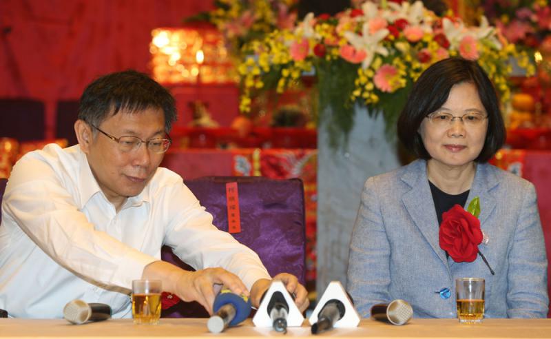 图:柯文哲(左)和蔡英文(右)一起出席活动 大公报资料图片